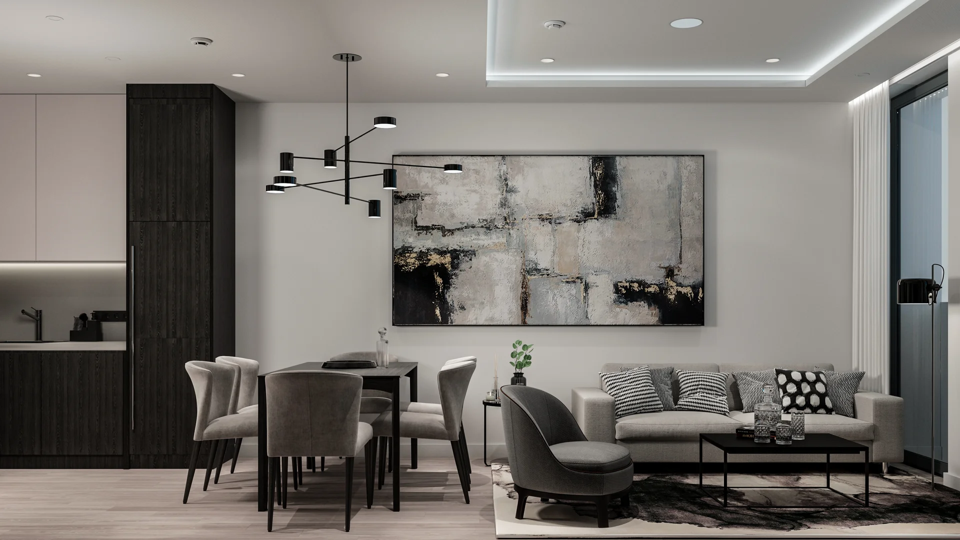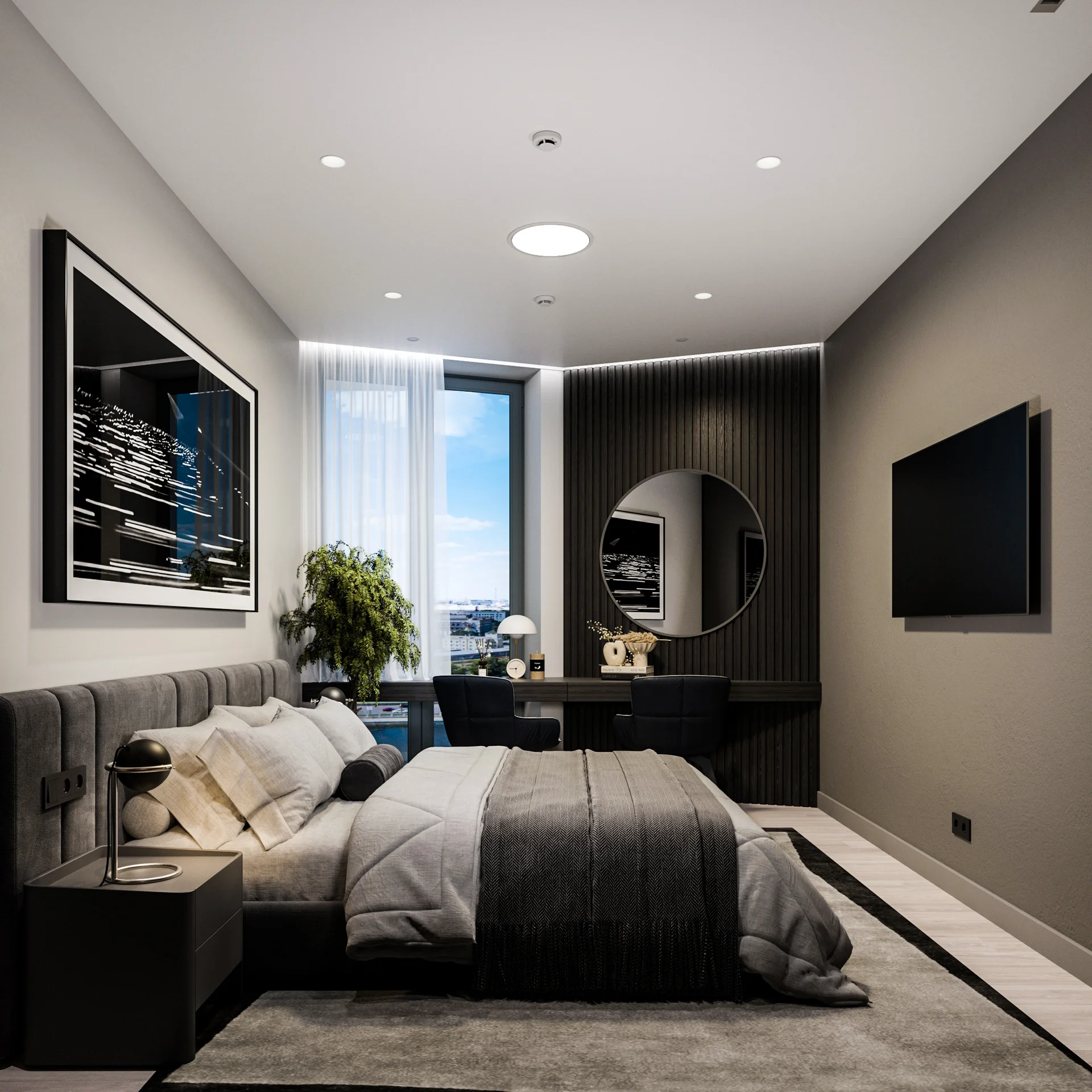Отличительной чертой является контрастное сочетание материалов, которое создает динамичное и запоминающееся пространство. Это идеальный выбор для тех, кто ценит смелые решения.