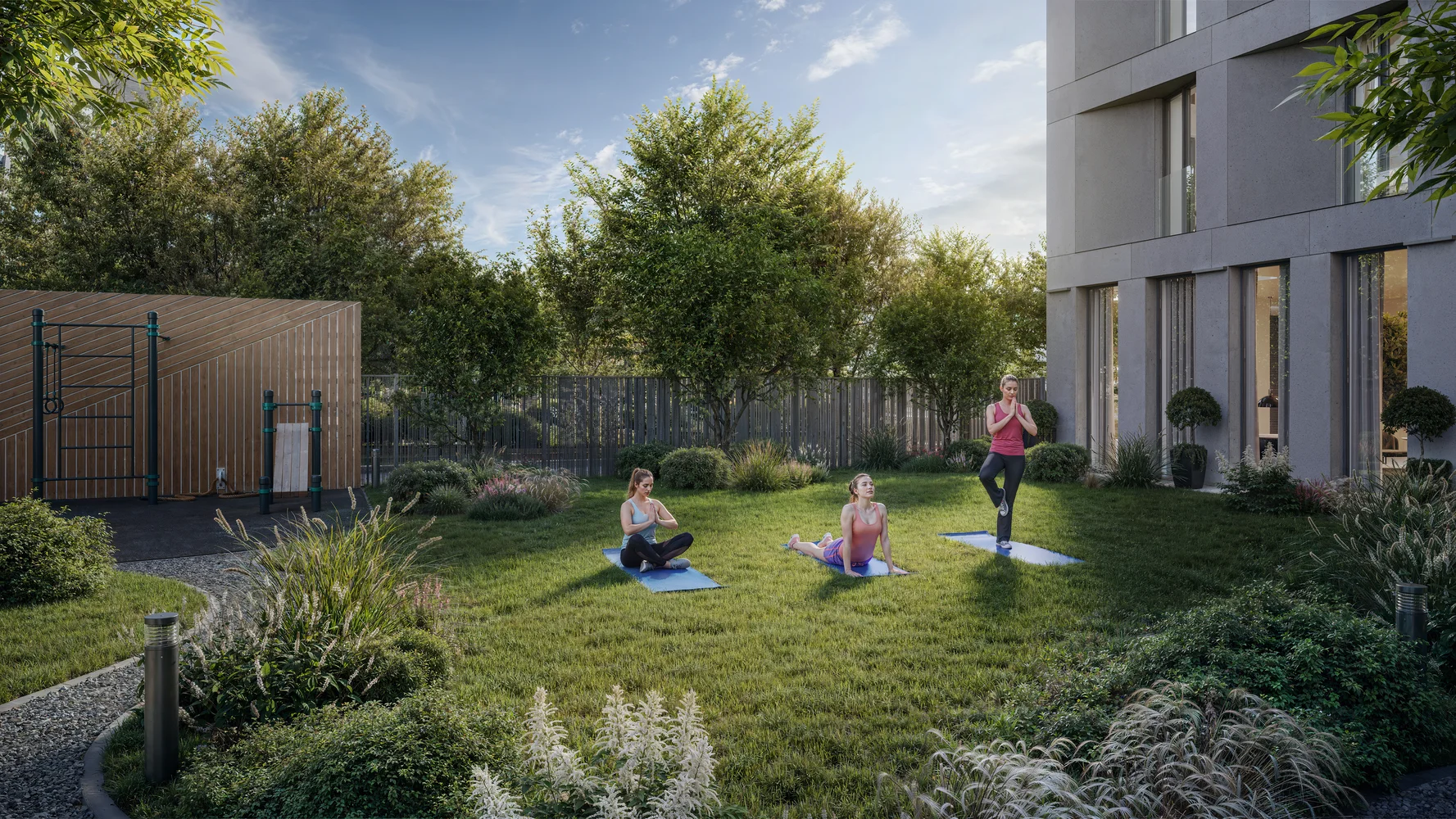 Уединённые зоны для спокойного отдыха, комфортные места для продуктивной работы на свежем воздухе, японский сад, спортивная площадка для занятий йогой и воркаутом вдали от апартаментов — здесь предусмотрены все возможные сценарии вашей жизни.